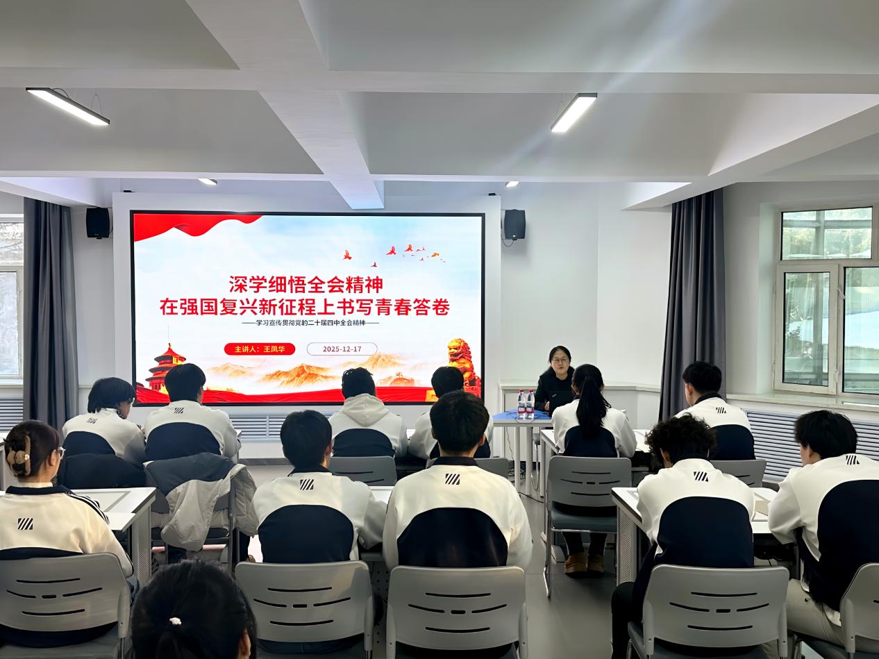 为深入学习贯彻党的二十届四中全会精神,12月17日,伊春职业学院党委副书记王凤华为工程应用技术学院师生做了一场主题为“深学细悟全会精神 在强国复兴新征程上书写青春答卷”的宣讲。