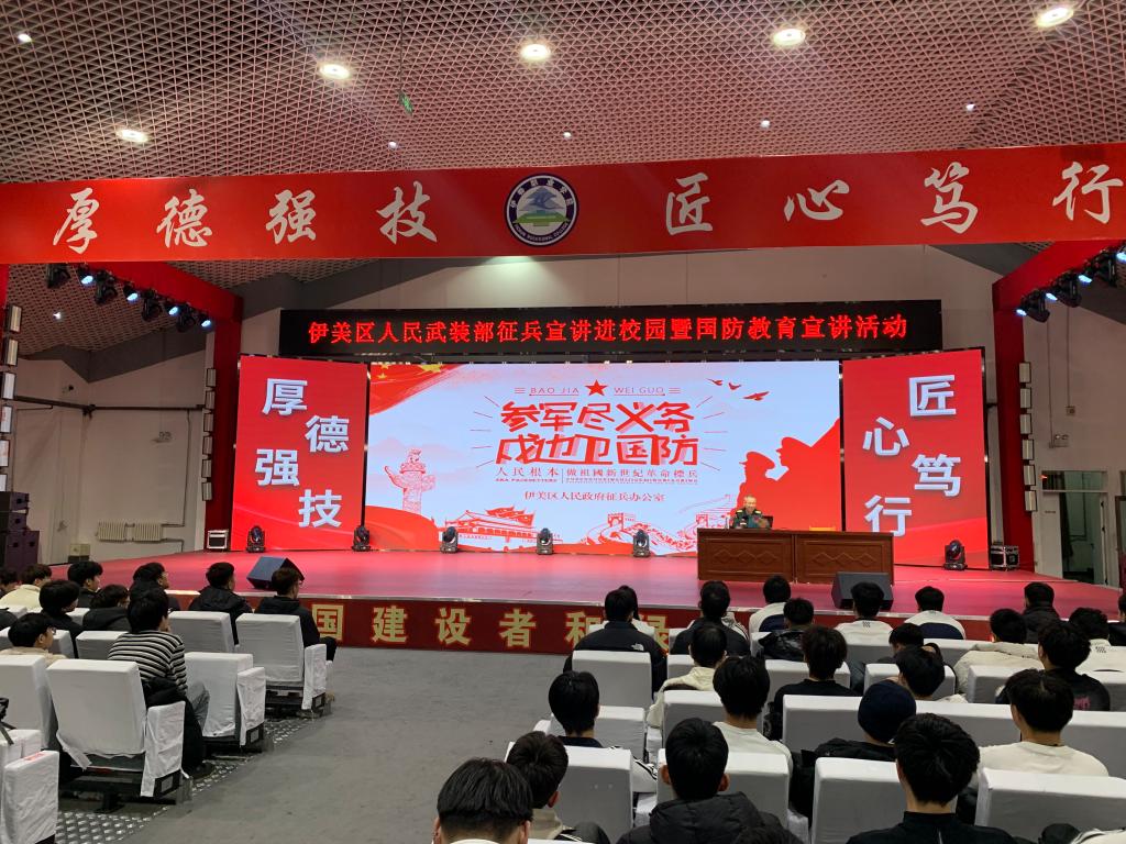 为深入贯彻习近平强军思想,全面普及国家征兵政策,激发青年学子参军报国、奉献国防的热情,推动征兵宣传工作走深走实,强化大学生国防安全意识,压实责任担当,近日,我校联合伊美区人民武装部开展了2026年征兵宣传进校园暨国防教育宣讲活动。各学院有入伍意愿的500余名学生参与活动。