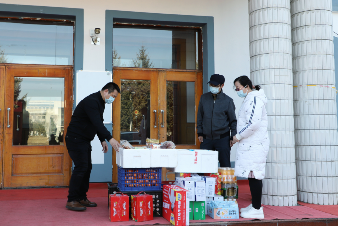 结合当前新冠疫情防控形势,为确保广大师生安全,学校实行封闭管理,班子成员、部分干部教师及相关工作人员入驻学校,校内疫情防控工作也无时无刻不牵动着校外居家办公的干部教师,他们以不同方式表达着对伊职这个大家庭的牵挂。4月1日晚上,4月2日上午,高嘉泽老师,刘东辉、于春华夫妻陆续为学校捐赠了饮用水、水果、牛奶等物资,助力校园疫情防控。