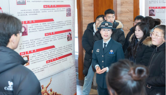 此次主题团日活动以沉浸式学习为核心,盛洪飞结合国家公祭日的历史背景,依托纪念馆内的史料展板、文物实物与影像资料,为师生们生动再现了那段民族苦难与抗争的历史。讲解中,他将南京大屠杀中同胞遭受的苦难、中华民族不屈不挠的抗争历程,与“四个一百”英雄模范的爱国奉献故事相串联,深刻阐释了“铭记历史、缅怀先烈、珍爱和平、开创未来”的精神内涵,让在场师生深切体会到民族记忆中不能忘却的伤痛与责任。