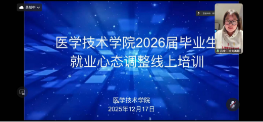 为帮助毕业生缓解就业压力,树立正确就业观,12月17日晚,我院组织开展“就业心态调整”主题线上培训。