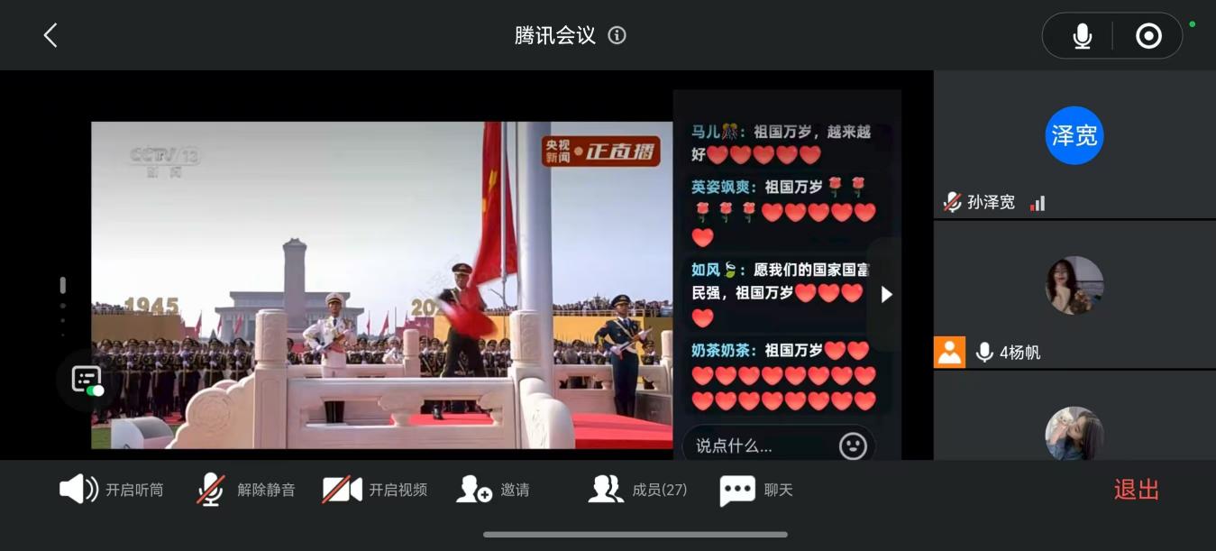 大家神情庄重,认真聆听习近平总书记在大会上发表的重要讲话并观看阅兵式。阅兵式上强大的阵容、恢弘的气势,让大家热血沸腾、心潮澎湃,深深为生活在这样一个强大、和平的国度而感到骄傲与自豪。