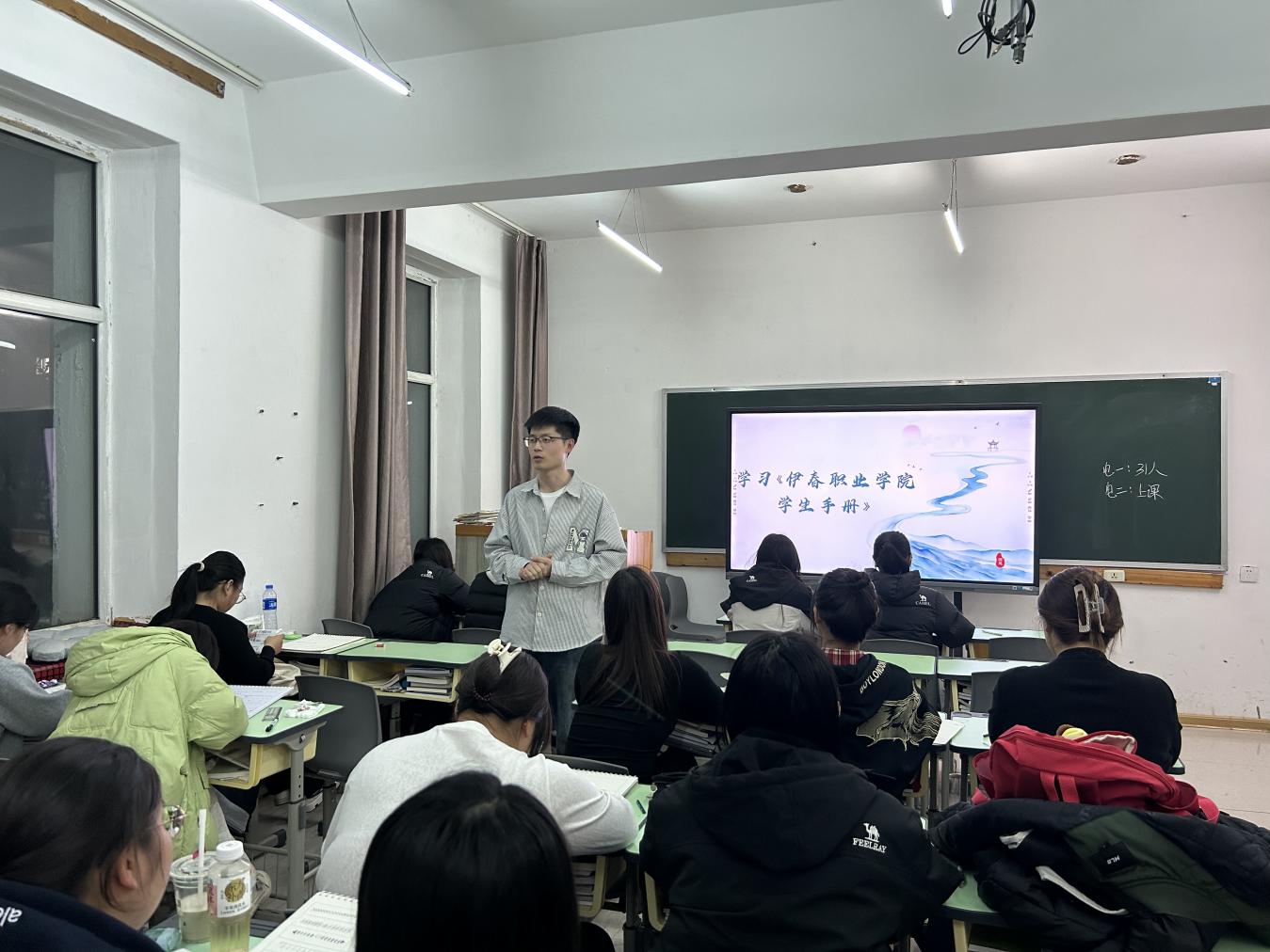 为帮助新生树立遵规守纪的意识,10月16日晚,我院辅导员和团学干部先后组织新生学习《伊春职业学院学生手册》,帮助新生掌握学校的规章制度、奖惩机制、教学管理、日常行为规范等内容,引导新生自觉树立规则意识。