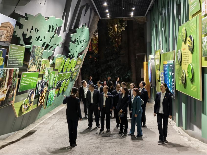 随后,一行人进入森林博物馆展厅,深入了解伊春林区从“伐木经济”到“生态保护”再到“绿色转型”的发展历程。从早期林业工人使用的锯斧工具、记录林区开发的老照片,到如今展现“绿水青山就是金山银山”实践成果,大家全方位感受伊春在生态保护与产业协同发展中取得的成绩。