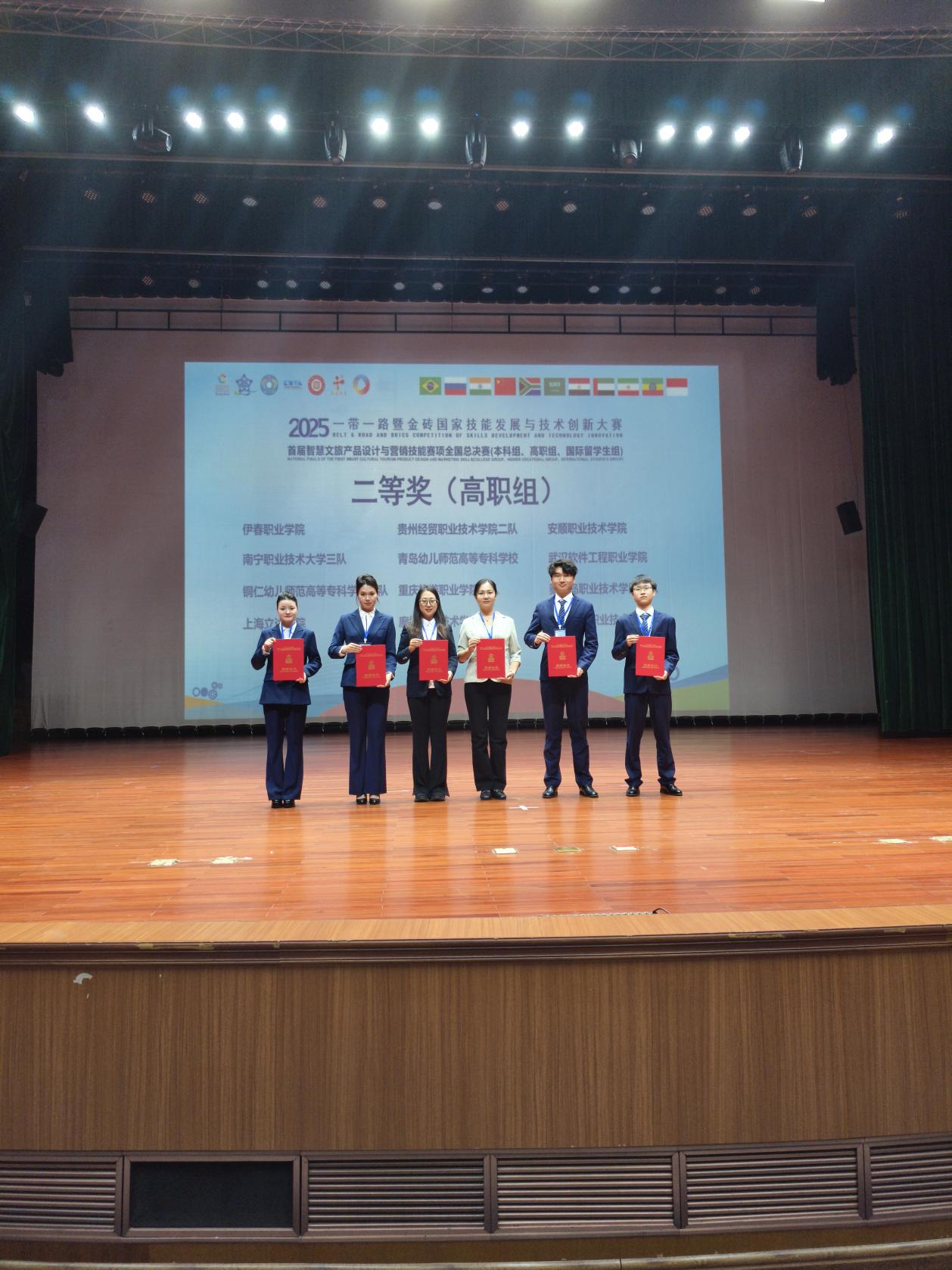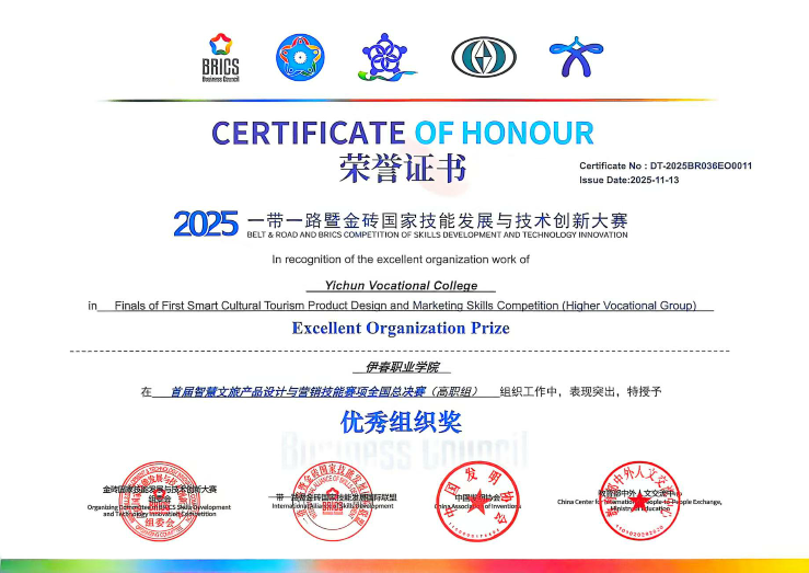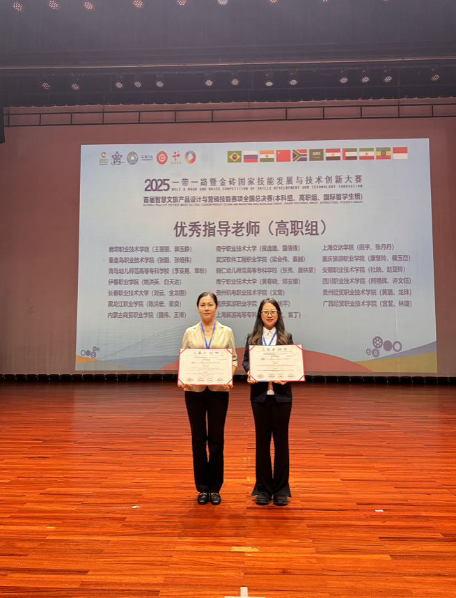 11月13日,“2025一带一路暨金砖国家技能发展与技术创新大赛——首届智慧文旅产品设计与营销技能赛全国总决赛”圆满落幕。旅游商务学院教师姚洪英、白天达带领4名学生组成参赛团队,与来自全国的80余支队伍同台竞技,成功斩获大赛银奖、优秀组织奖,两名教师荣获“优秀指导教师”称号,为学校职业教育成果再添亮眼一笔。