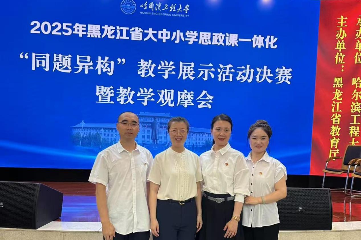 近日,由黑龙江省教育厅主办的 2025 年黑龙江省大中小学思政课一体化“同题异构”教学展示活动在哈尔滨工程大学隆重举行。本次活动旨在通过思政课一体化建设,推动大中小学思政教育的协同发展,提升思政课教学质量,培养学生的综合素质与品德修养。